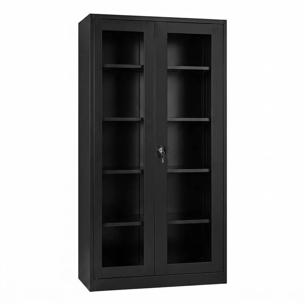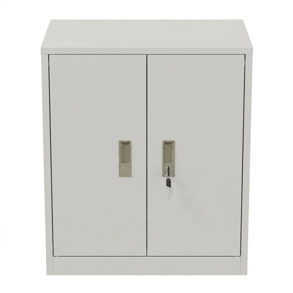 Armario de Oficina Multifuncional con Cerradura, Almacenamiento de Acero, 2 Puertas, Gris Mate