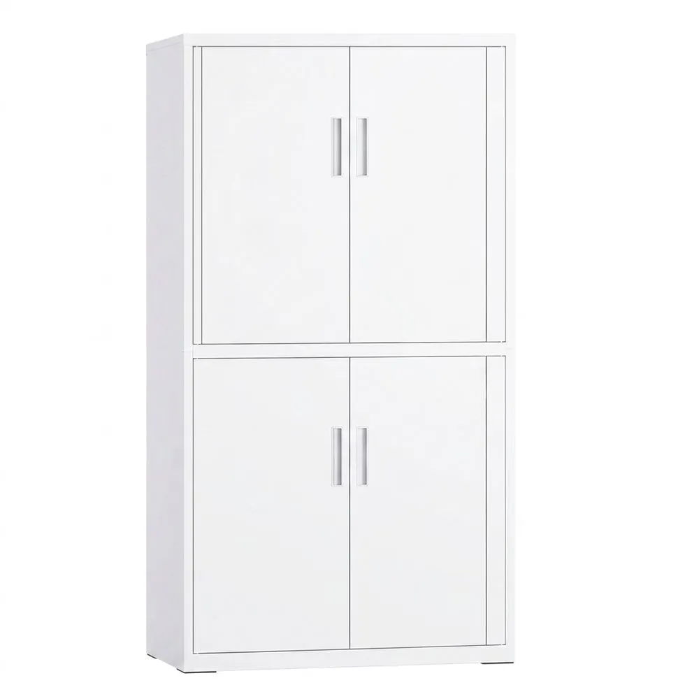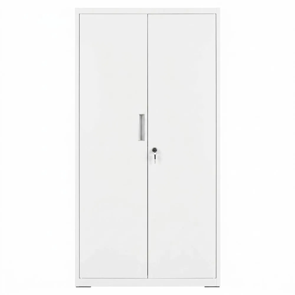 Armario Metálico de 5 Estantes con Puertas y Cerraduras, Estantes Ajustables, Blanco Mate