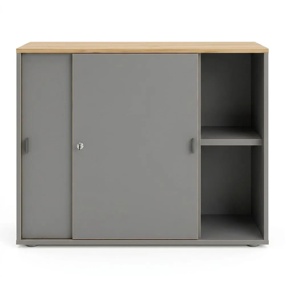 Armario de oficina moderno con puertas correderas, 2 compartimentos, aprox. 74 x 100 x 37 cm