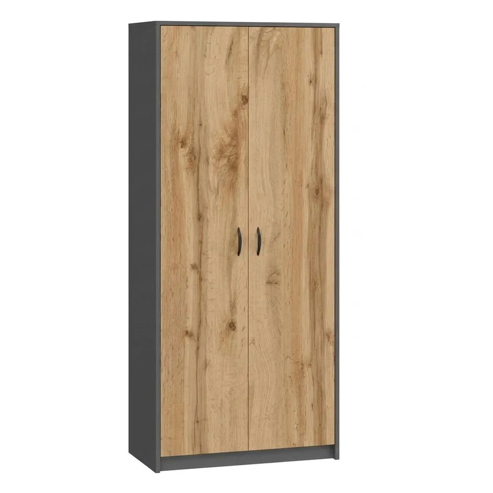 Armario de Oficina con 2 Puertas y 5 Compartimentos, Multiuso 180 x 74 x 35 cm, Grafito/Roble Wotan