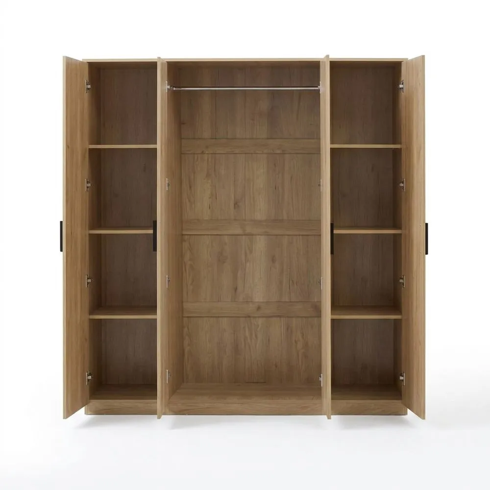 Armario de Dormitorio con 3 Puertas, 1 Perchero y 4 Compartimentos de MDF en Acabado Roble
