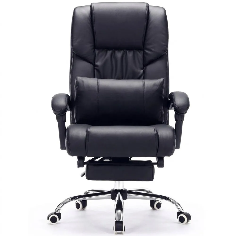 Silla ergonómica de oficina con diseño de cuero y reposapiés ajustable