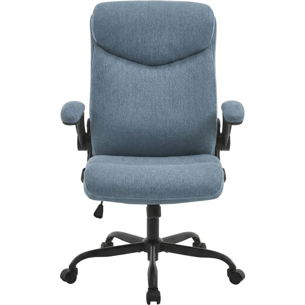 Silla de Oficina Ergonómica con Respaldo y Reposabrazos Plegables, Función Balancín, Algodón y Lino, Azul