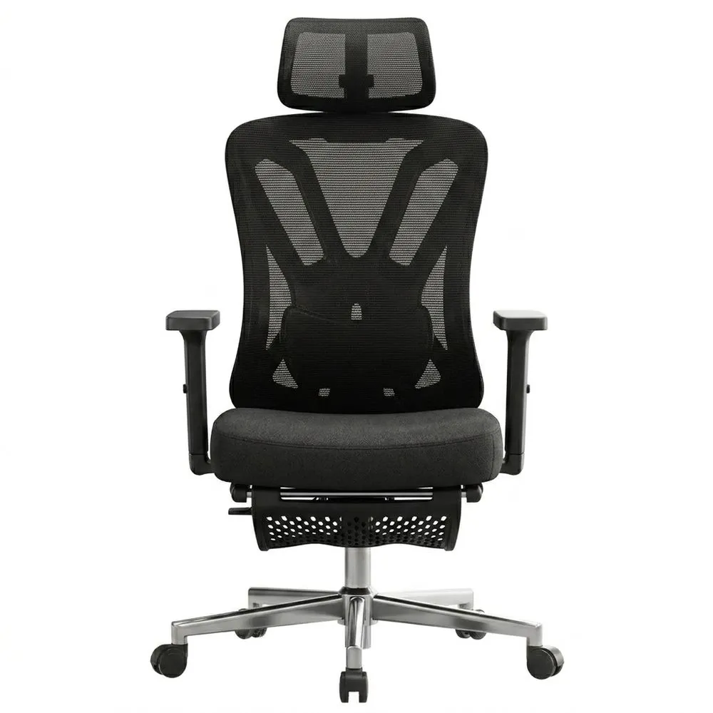 Este silla de oficina tiene reposabrazos articulados y curvados que permiten reposar los brazos. Además, el respaldo ergonómico se adapta bien a la curva del cuerpo para aliviar la fatiga. El cojín suave y la tela de malla transpirable aumentan la comodidad. La altura del asiento se puede ajustar libremente de 55cm a 75cm según sus necesidades, siendo adecuada para mesas de diferentes alturas. También está equipada con un reposapiés ajustable para mejorar la experiencia de sentado, y el soporte lumbar es adaptable a distintas necesidades. La estructura principal de la silla está hecha de metal de alta calidad, lo que proporciona estabilidad y soporta hasta 120kg. Está recubierta de polvo para resistir la oxidación, y el cilindro de gas asegura un movimiento suave y estable hacia arriba o abajo. La base de 5 patas está diseñada para ofrecer robustez. El asiento de esta silla de escritorio puede girar 360 grados, permitiendo rotar en cualquier dirección para una mejor interacción con los colegas. Las ruedas lisas en la parte inferior son universales, facilitando mover la silla a cualquier lugar deseado. Con todos los accesorios necesarios y una instrucción clara, la silla de oficina de respaldo alto es fácil de montar y no requiere mucho tiempo ni esfuerzo. Su alta movilidad y su apariencia la hacen adecuada para múltiples ocasiones, como el hogar y la oficina.