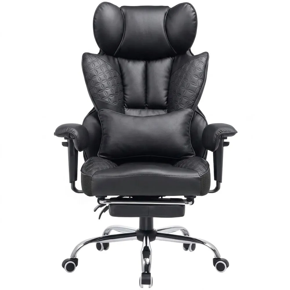 Silla ergonómica de oficina con diseño de cuero y reposapiés ajustable