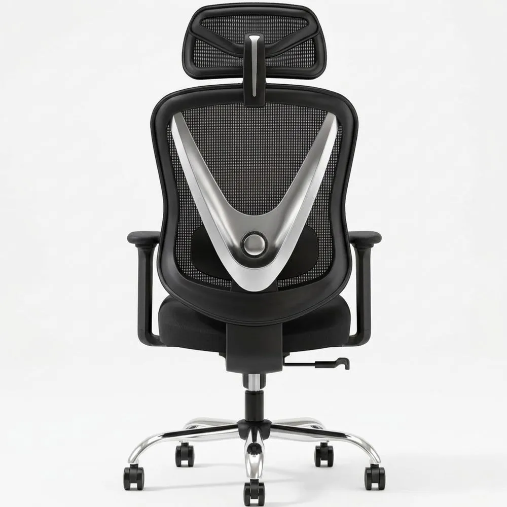 El soporte lumbar se ajusta en múltiples direcciones para adecuarse a la columna, ofreciendo comodidad personalizable y apoyo para mejorar la postura. Los reposabrazos y el reposacabezas son ajustables en varias posiciones, adaptándose a diferentes actividades. El diseño en forma de V plateada añade un toque actual a cualquier espacio, combinando soporte ergonómico y estética. El producto cumple con estándares de certificación, asegurando un uso prolongado gracias a su malla de alta densidad y base resistente. El montaje es sencillo y rápido con todas las herramientas incluidas.