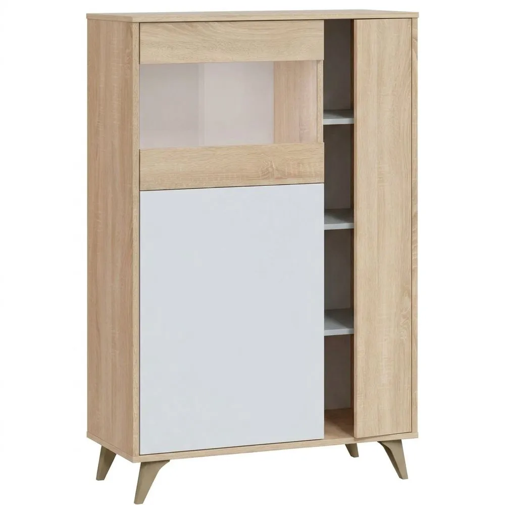 Armario con 3 puertas abatibles y sistema de apertura push. Acabados interiores en color blanco. Incluye estantes interiores para organizar el espacio de almacenamiento. Equipado con patas de ABS de 12 cm de altura.